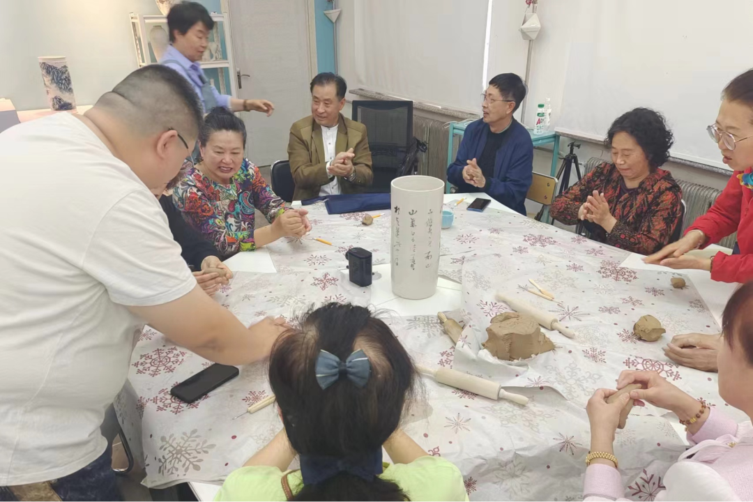 我校是国家级全民终身教育示范校,恰逢一年一度的职业教育活动周,艺术传媒系组织开展老年合唱团进高校体验文化艺术活动。5月17日下午,由铁锋区文体合唱团团长杨凤桐带队,合唱团45位老人一行到我校进行合唱演唱交流、体验陶瓷艺术,艺术传媒系党总支书记王洪江、副主任韩丽参加活动。