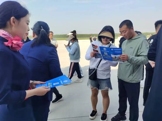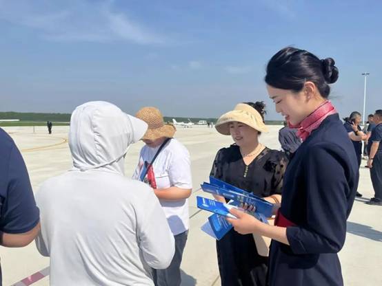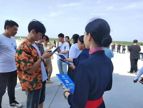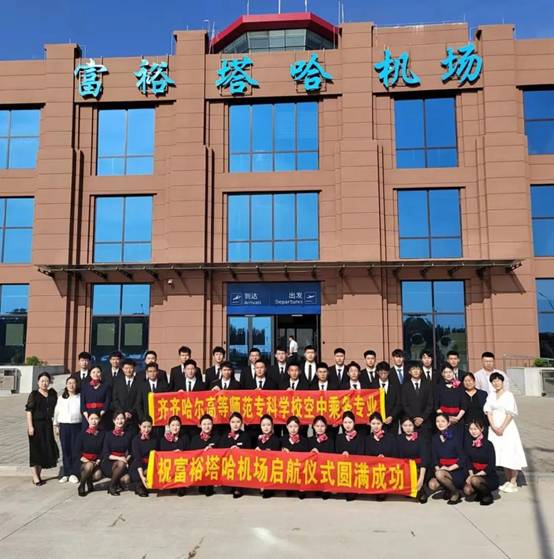 富裕塔哈机场启航仪式特邀我校空中乘务专业学生进行礼仪接待服务工作,学生得体的举止、真诚的微笑和专业的服务,赢得了嘉宾们的一致好评,多家媒体和自媒体争相报道,很多参观者前来咨询学校和专业情况,老师和同学们积极热情解答问题,分发招生宣传材料,提高了我校空中乘务专业的知名度。