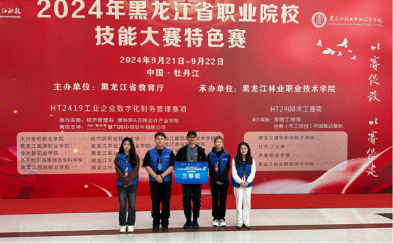 9月21日至22日,在黑龙江林业职业技术学院举行的“HT2419(高职组)工业企业数字化财务管理(团体赛)”赛项中,由孟祥明、李雪娇老师指导的23级大数据与会计专业刘思彤、任屿竺、陈卓、米璐雅四位同学组成的代表队取得了三等奖。