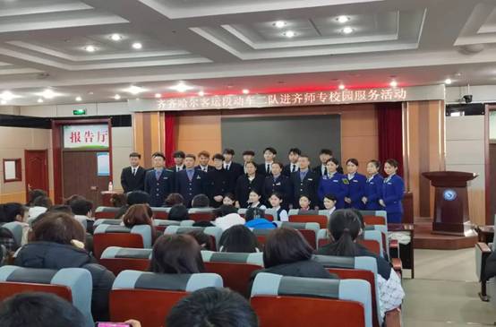 随后,齐齐哈尔客运段动车二队列车长们在253多功能报告厅与我校高速铁路客运服务专业学生进行了现场互动,两位列车长为学生们展示了高铁客运服务技能及特殊情况的处理技巧,并为学生们整理了着装,鼓励他们努力学习,将来为高速铁路客运服务业发展贡献力量,同时就学生们在寒假购票过程中可能遇到的各种困难和疑问进行了解答。