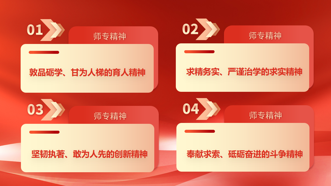 微课开始以学校的百年历史为序幕,介绍了孕育齐师专精神的深厚历史土壤。随后,微课分别围绕着“敦品砺学、甘为人梯”的育人精神;“求精务实、严谨治学”的求实精神;“坚韧执著、敢为人先”的创新精神;“奉献求索、砥砺奋进”的斗争精神对齐师专精神的内涵进行了细致的阐释,以可感知、可触碰的红色历史和感人故事挖掘学校的文化底蕴,寻找省立第一师范学校的建校初心。一则则生动鲜活的故事,一个个家喻户晓的名字通过微课浮现在师生眼前,引导广大师生发扬齐师专优良传统、践行社会主义核心价值观,培育新时代良好精神风貌。微课的结尾立足当前,以新一届领导班子成立后的优良成绩为依托,号召广大师生团结一心,协手奋进,大力弘扬“齐师专精神”延续师专人的梦想和追求、情怀与担当,推动学校展现新气象、实现新作为、创造新业绩。