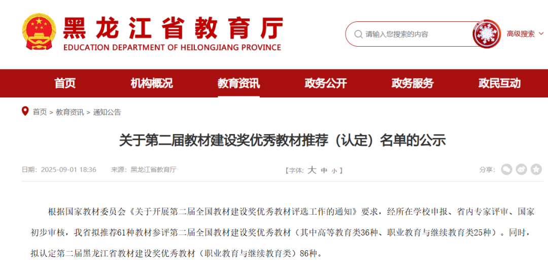 第二届黑龙江省教材建设奖评选聚焦职业教育与继续教育类教材的质量与创新,共拟认定86种优秀教材,同时推荐25种教材参评第二届全国教材建设奖。《学前儿童美术教育(第五版)》的获奖,是对我校教材建设工作的肯定,学校将以此次教材获奖为契机,进一步推动学校教材质量与教学水平的提升。
