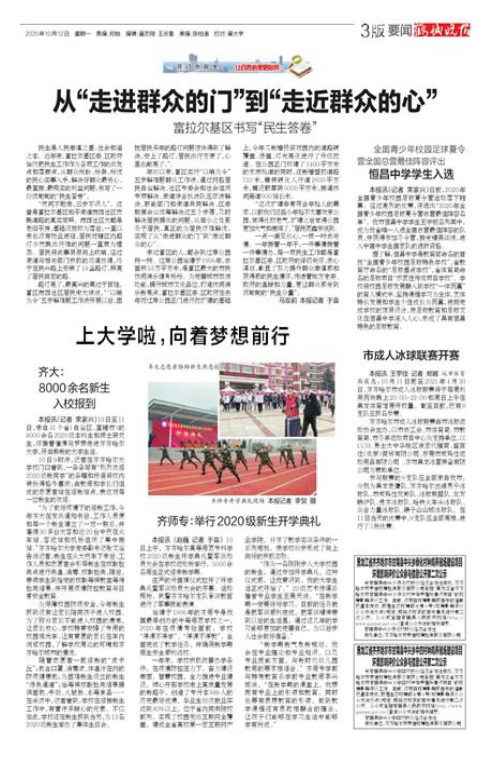 始建于1906年的齐师专是我国最早创办的中等师范学校之一,2020年在疫情考验面前,学校“停课不停学”、“停课不停教”,全面完成了教学任务,并确保新学期师生安全顺利返校。