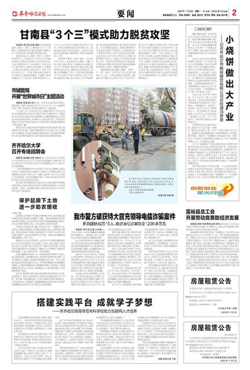 齐齐哈尔日报 2020年11月2日 星期一 A2版要闻