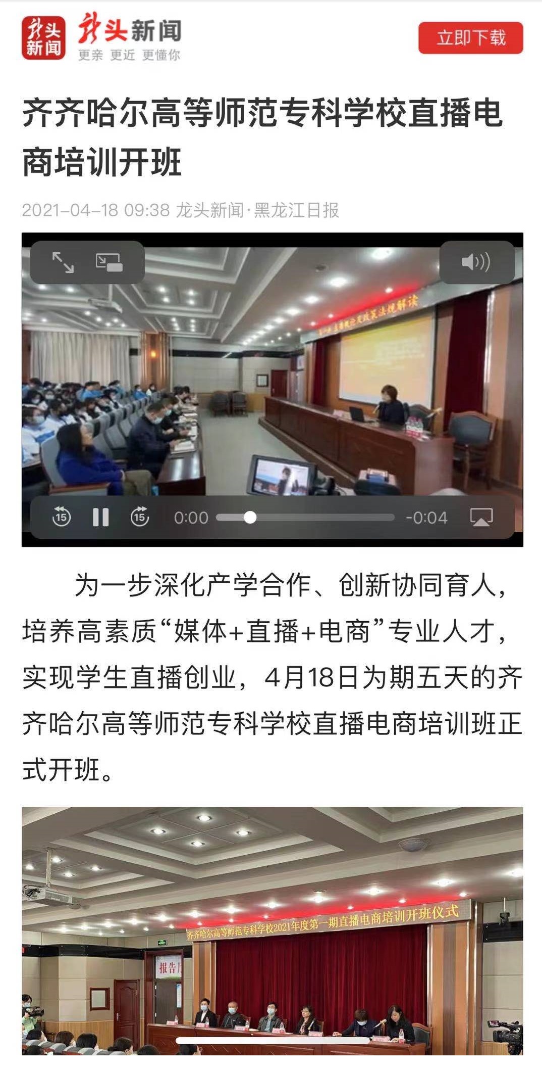 网址链接:齐齐哈尔高等师范专科学校直播电商培训开班