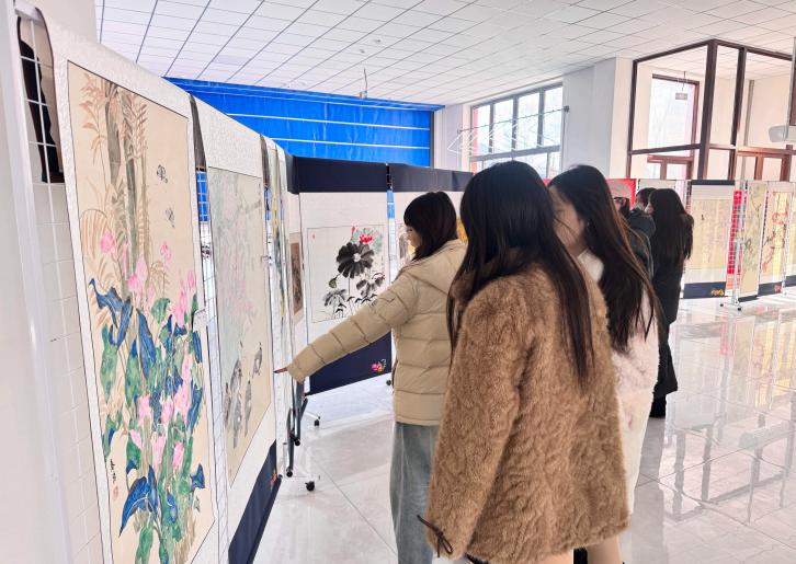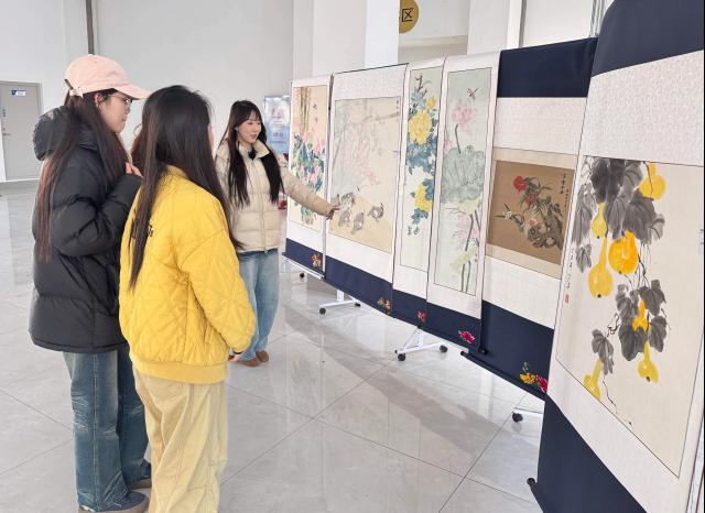 展览现场,一幅幅主题鲜明的书画作品或笔走龙蛇、气势磅礴,或勾勒细腻、意蕴悠长,既展现了青年学子扎实的艺术功底,更传递出他们对传统文化的深刻理解与无限热爱。往来学子驻足观赏,在笔墨丹青间感受传统文化的魅力,在交流探讨中提升审美素养,社区内文化气息愈发浓厚。