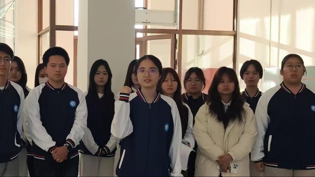 历史回响激荡青春思考。在学生代表发言环节,青马协会成员、法治专业学生周子茹结合自身感悟,与大家分享了活动心得。她表示,江桥抗战的英雄故事让她深刻认识到,英雄的伟大在于关键时刻的挺身而出与责任担当。她将这种精神延伸至寝室生活,提出“维护宿舍和谐、助力室友共进,就是当代青年践行责任的具体体现”,引发在场同学的强烈共鸣。