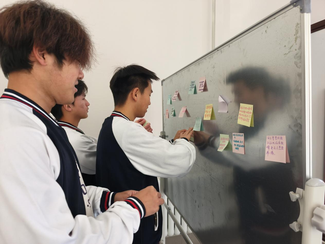 感悟化为行动,承诺见证初心。活动进入“行动承诺”环节,同学们纷纷拿起彩色便利贴,郑重写下力所能及的践行承诺:“每日专注自习两小时”“主动承担宿舍清洁任务”“及时关心室友情绪变化”……一张张承载着责任与温情的便利贴,汇聚成一面五彩斑斓的“承诺墙”,生动展现了学子们从身边小事做起、践行思政精神的坚定决心。