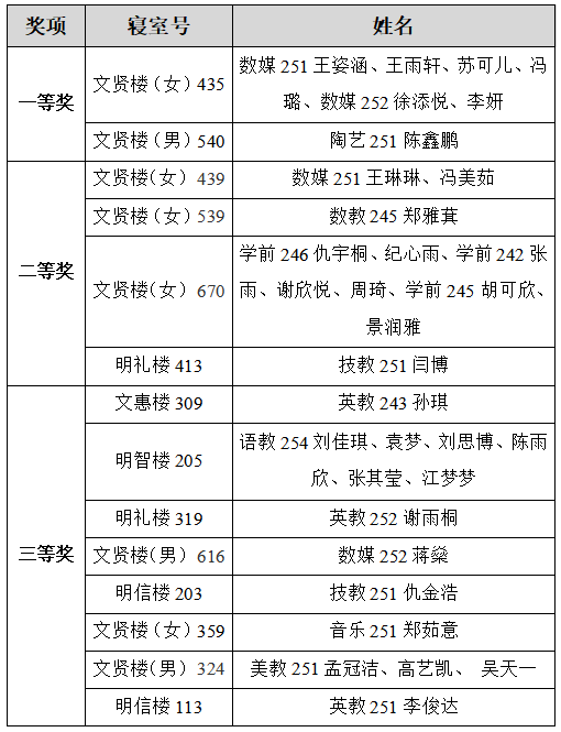 活动期间,全校学子热情高涨、踊跃参与,纷纷以画笔手绘或电脑设计的形式,将对美好宿舍生活的憧憬凝于笔端,精心撰写的公约内容,字里行间尽显对和谐寝室氛围的向往。活动共征集到各类作品50余份,经严格评审,最终获奖名单如下: