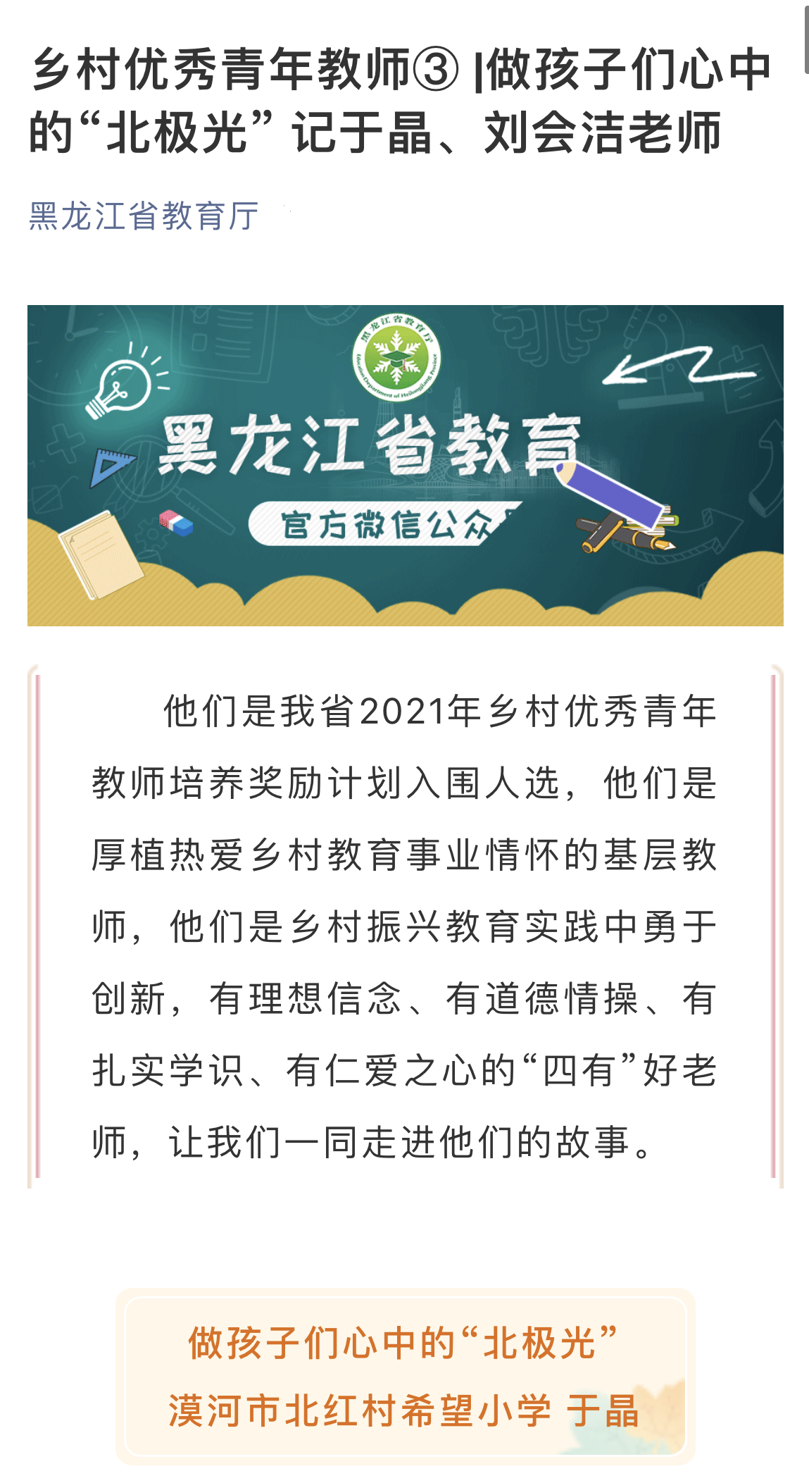 十年时光,于晶扎根在中国最北端的希望小学,带着责任教书,带着感情育人,坚持把红色文化融入课堂、植入校园文化,让孩子们铭记历史的同时变得更有担当。她坚守苦寒之地,用书香滋润最北国土,让孩子在家门口接受最暖心的教育。