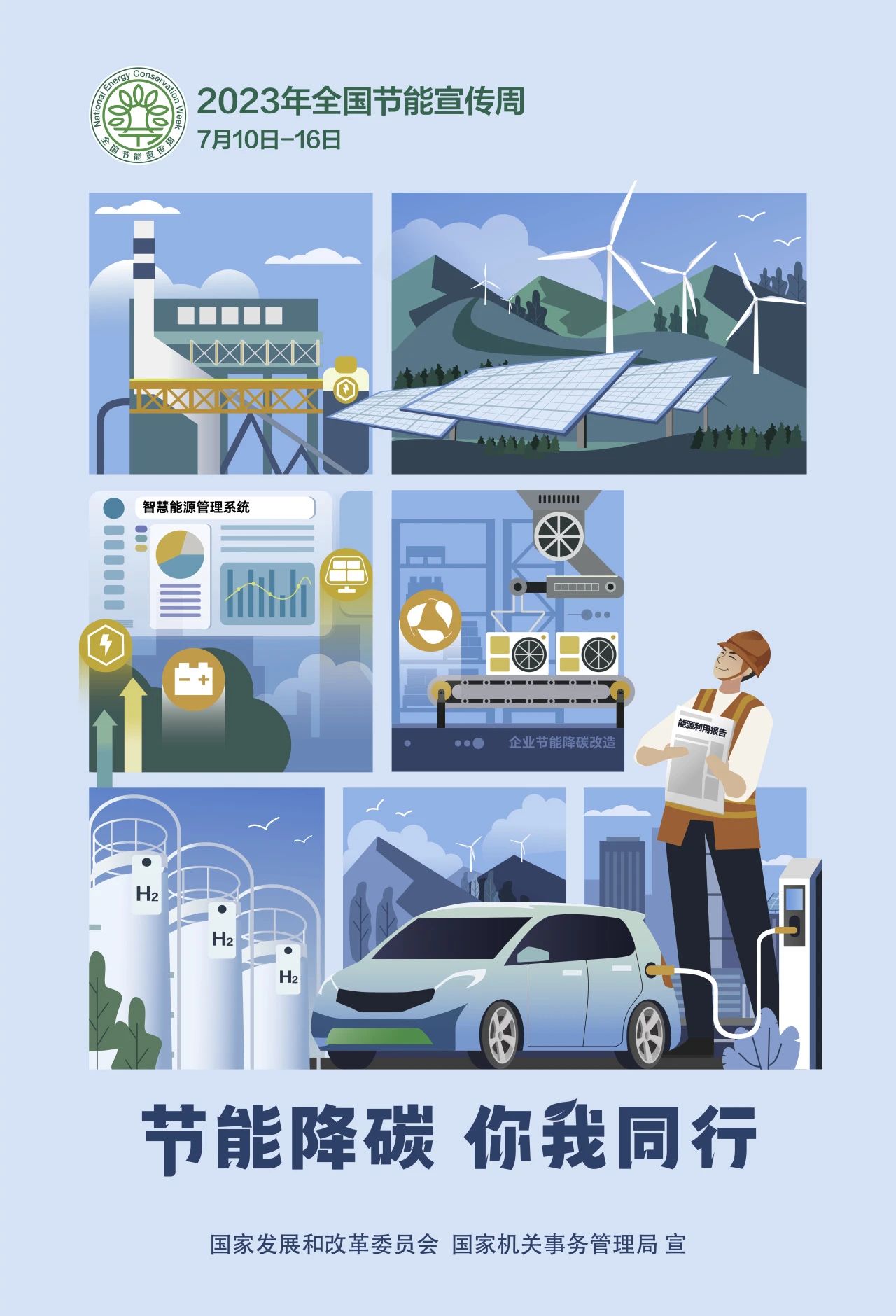 2023年全国节能宣传周为7月10日至16日,主题是“节能降碳,你我同行”。