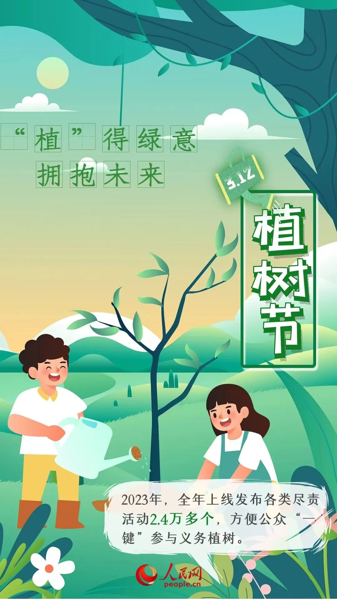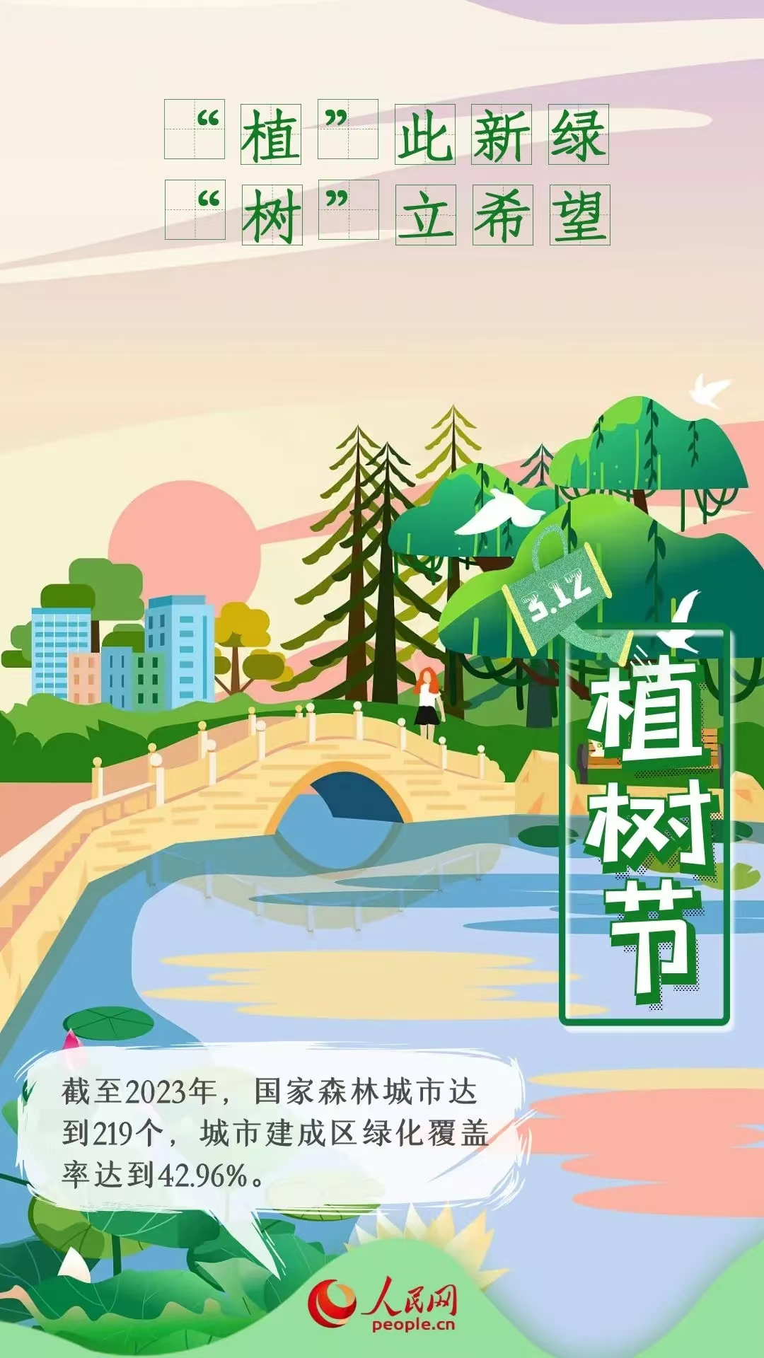 今天是我国第46个植树节。全国绿化委员会办公室发布《2023年中国国土绿化状况公报》(以下简称《公报》)显示,全国全年完成造林399.8万公顷、种草改良437.9万公顷、治理沙化石漠化土地190.5万公顷,国土绿化工作取得新成果。