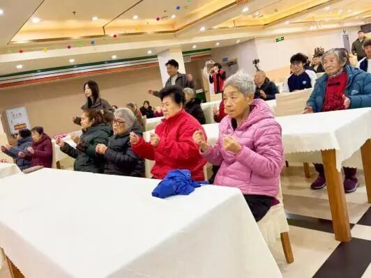 互动手势舞《日不落》将活动推向高潮,学生志愿者们主动邀请老人们一同参与,简单欢快的动作传递着无限快乐,现场欢声笑语不断,其乐融融,“幸福如日不落”的美好祝愿在彼此的互动中悄然传递。