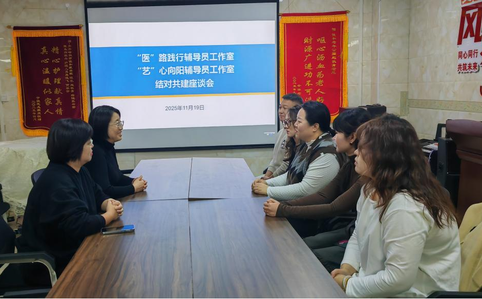 活动结束,为深化校际合作、推进辅导员工作室建设提质增效,“艺”心向阳辅导员工作室与“医路践行”辅导员工作室,联合召开工作室结对共建座谈交流会。双方以敬老公益活动为契机,围绕工作室建设经验、志愿服务常态化、党建与实践融合等核心议题深入交流,凝聚共建合力。