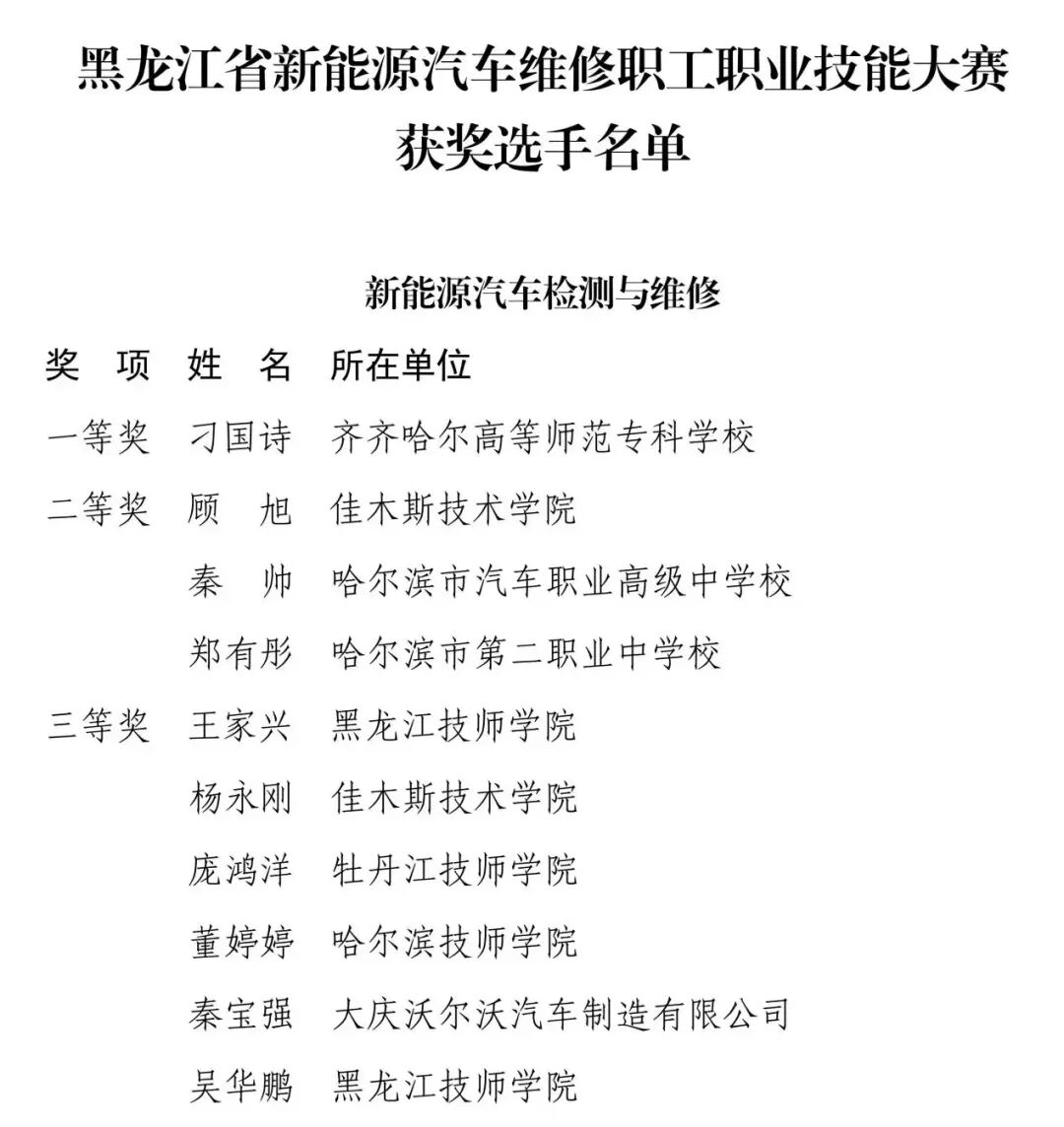 近日,由黑龙江省总工会举办的2025年黑龙江省新能源汽车维修职工职业技能大赛在哈尔滨圆满落幕。我校职业技术系教师刁国诗凭借精湛的故障诊断技艺、娴熟的维修实操能力,以及对新能源汽车电控系统、电池管理等前沿技术的精准把控,在全省36名参赛选手中崭露头角,以总分第一的优异成绩斩获一等奖。这一突破不仅是我校教师个人专业能力的集中体现,更印证了我校在“双师”教师队伍建设上的扎实成效,响应了国家对职业教育“强化技术技能培养、打造高素质师资队伍”的核心要求。