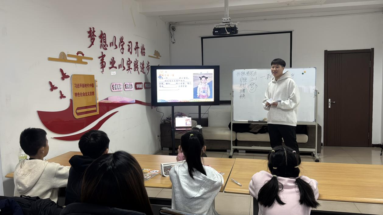为了让辅导更专业,基础教育一系组建了骨干教师指导团队,和社区反复沟通课程适配性、安全保障等细节。志愿者们更是提前打磨教案、多次试讲,在专业老师的指导下学习课堂互动技巧和儿童心理疏导方法,把课本上的教育学知识,变成了孩子们听得懂、喜欢学的趣味内容。“第一次试讲时紧张得忘词,现在能和小朋友们顺畅互动,看着他们认真的眼神,特别有成就感。”第三次参与辅导的志愿者闫晓荟说。